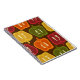 Get cookin' with our retro graphic red, orange, yellow and green bell peppers cut in half. Brown background. Perfect kitchen gift for your favourite chef. PinkInkArt original!