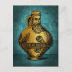 A vintage illustration of a Bellarmine or bartmann jug, re-coloured and textured to make an interesting design. Bellarmines were a kind of stoneware vessel decorated with a stern man's face, often used for spells as "witch bottles" in Elizabethan era England.