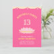 Jolie carte d'invitation du 13e anniversaire avec une fleur de lotus rose sur l'arrière - plan magenta à l'avant et un motif étoile rose à l'arrière. Le texte et les numéros peuvent être personnalisés pour tous les âges.