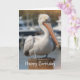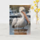 Cette carte d'anniversaire comporte un pélican reposant sur un poteau dans une marina.