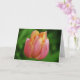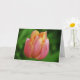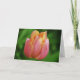 Photo originale d'une belle fleur de tulipe rose avec des reflets jaunes dans les pétales contre l'arrière - plan feuillu et verdoyant. Cette carte est vide à l'intérieur et peut être utilisée pour n'importe quelle occasion. Vous pouvez ajouter du texte comme vous le souhaitez ou laisser tel quel ! Cette carte peut également être encadrée pour l'art mural.