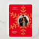 Cette belle carte de Foil de Noël à flocon rouge dispose d'un espace photo pour vous, votre famille, votre animal de compagnie ou plus. Le design est doté d'un flocon de neige élégant en feuille de papier pour accueillir toute votre famille et vos amis cette saison de vacances.