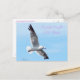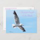 Une Carte Postale avec une belle mouette blanche de Seagull volant contre un ciel bleu. Cette photographie est Copyright, 2015, par moi le photographe.