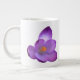 Cette énorme tasse présente une belle et détaillée photo d'une fleur de crocus violet prise en macro photographie.
