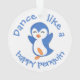 Caricature mignonne d'un pingouin qui danse avec un texte "danse comme un pingouin heureux"