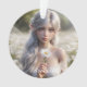 Une belle fée aux cheveux argentés aux ailes transparentes portant une jolie robe blanche et des bijoux en diamant tient une simple marguerite blanche debout dans un champ de marguerites. Le texte peut facilement être modifié ou supprimé si vous voulez l'image sans texte.