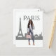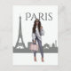 Belle fille à Paris avec carte postale Tour Eiffel