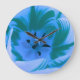 Cette horloge impressionnante présente une belle photo d'une tulipe. La photo a été colorée artificiellement, ce qui donne une fleur bleu vif avec plusieurs nuances de bleu sur les pétales.