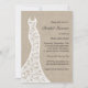 Une robe mariage en dentelle romantique accentue cette invitation à la douche nuptiale sur un arrière - plan burlap illustré pour le pays, vintage ou mariage rustique. Cette invitation est affichée sur le papier de base; cependant, je recommande le poids et la texture du papier de lin.