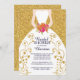 Invitation à la mariée moderne avec une mariée dans une robe blanche avec un faux accent floral floral et un bouquet de fleurs de mariée rose & orange et or chaud sur un classique classique arrière - plan de faux parties scintillant or. Retournez notre invitation chic et élégante à la mariée wedding shower pour voir une parties scintillant correspondante pour une touche spéciale supplémentaire. invitation de douche de nuptiale contemporaine pour douche de nuptiale printanière, douche de nuptiale d'été, douche de nuptiale d'automne ou douche de nuptiale d'hiver. Visitez notre boutique pour voir ce dessin populaire de mariée en différentes couleurs.