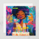Une invitation à l'anniversaire pour cette reine spéciale ! Colorée, comme elle l'est, et tout aussi belle ! Des couleurs vives et brillantes en vert, rose et bleu pour mettre en valeur la façon dont elle illumine le monde. Arrière - plan est une belle flore vibrante qui rappelle les îles, et un beau gâteau d'anniversaire est la cerise sur le dessus !