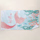 Cette belle serviette de plage d'anniversaire de sirène fait une grande faveur pour tous vos invités ou un cadeau pour votre fille d'anniversaire! Customisez chaque serviette avec votre nom. Cette conception présente une aquarelle brillante queue de sirène éclaboussant dans l'océan bleu. Parfait pour votre petite sirène ! Voir toute la collection Beautiful Mermaid pour plus d'articles correspondants !