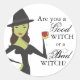 Une belle sorcière verte veut savoir si vous êtes une Bonne sorcière ou une Mauvaise sorcière dans cet autocollant amusant - parfait pour les fêtes d'Halloween ou toute autre célébration sorcière que vous pourriez avoir!