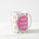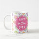 Voici une belle tasse de café avec un joli motif de fleur coloré à l'arrière-plan et maman de mots à la meilleure jamais imprimés des deux côtés pour les buveurs gauchers ou droitiers de café. Une manière élégante de la dire à votre maman est spéciale.