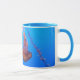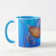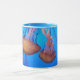 Cette tasse montre une photographie de deux belles méduses avec de longues tentacules pendant qu'elles nagent par l'eau assez bleue d'océan. Cette photographie a été prise par mon fils, David Mann.