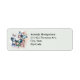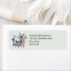 Étiquettes de adresse avec un trio de papillons flottant parmi de jolies fleurs. Couleurs bleu rose et vert.