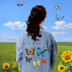 Veste femme aux papillons multicolores volant.