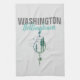 Modern word art features Washington in distressed grey font with Bellingham in a modern aqua script font with geometric trees logo style graphic