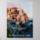 ART WALL DECOR - POSTER : Artsy artistic Watercolor Digital Painting of MANAROLA which part of CINQUE TERRE in Italy / Italia . Lots of Blue magenta and pink are in this digital painting.