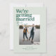 The Belmont save-the-date card showcases a vertical photo that captures the essence of the couple's love, creating a visual centerpiece that speaks volumes. In the top left corner, the bold declaration "We're getting married" steals the spotlight. Directly beneath, the couple's names are delicately written in a handwritten calligraphy style, infusing a touch of personal charm and sophistication.