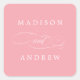 Beautiful custom wedding stickers featuring an elegant script font and placeholders for the couple's names against a rose pink background. Use the personalized wedding stickers for wedding favours, envelope seals, scrapbooking, and more!