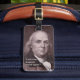 A luggage tag with Ben Franklin's face on it, along with a quote well-suited to the need for a luggage tag. You can use the CUSTOMIZE feature to enter whatever text you wish on the back, such as contact information.