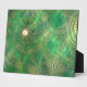 Fractals combined to create green light patterns on the sea floor, overlaid with ornate gold spirals and a single pearl. The fractals were created in Apophysis and Xaos.