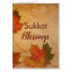Envoyez des Bénédictions de Sukkot cette année pour accompagner les Fêtes d'automne. La couverture frontale affiche un joli design Feuille d'érable avec un thème automne. "Sukkot Blessing" est écrit dans une belle police au milieu. L'intérieur de la carte est un rouge profond avec une police jaune clair. Commandez dès aujourd'hui ! Art : Anja Osenberg