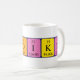 Benedikte spelled out as Be Ne D I K Te (Beryllium Neon Deuterium Iodine Potassium Tellurium) on a mug for the scientist in you.