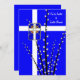 Le bleu royal vibre contraste magnifiquement avec la croix blanche et les branches de saule de la chatte printanière. Tout est agrémenté d'un vitrail de croix celtique.