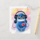 Benny Blue Bunny - Listen To Your Heart, headphones heart beat music, traditional whimsical illustration by Christine Karron
