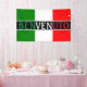 This custom welcome banner features the greeting "Benvenuto" printed across the center. Benvenuto is the Italian translation for "Welcome" and it is printed in the colors of the flag of Italy. The first three letters are green, the second three are white, and the final three are red. The greeting is printed across the Italian flag. Proudly greet your visitors to your Italian home or business. You can personalize the welcome banner to include your family or company name, or other custom text.