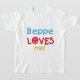 Beppe Loves Me T-shirts, cards, stickers, bodysuits bags, and more with colourful red, yellow, and blue text and heart design. These Beppe Loves me apparel and gift items will make beppe smile!