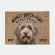 This welcome mat can be personalized with your dog’s name, the slogan can also be changed or you could use a picture of your own dog (make sure it's transparent). Text reads: Monty Lives Here…. All treats welcome.