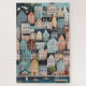 A beautifully illustrated puzzle capturing the charm of Bergen, Norway, featuring a picturesque hillside of colourful wooden houses in pastel tones. the intricate detailing of the traditional Nordic architecture is complemented by the bustling waterfront below, where small boats and sailboats gently float on the harbour. lush green hills and a whimsical sky with soaring birds add to the fairytale-like atmosphere of this Nordic gem. this artistic depiction perfectly reflects the cozy, vibrant, and historic essence of Bergen.