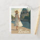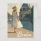 This captivating vintage poster features a stylish woman dressed in classic 1950s fashion standing gracefully near the iconic Berlin Cathedral. The majestic architecture of the cathedral looms in the background, rendered in warm, nostalgic tones with retro textures that evoke the charm of mid-century Berlin. The composition beautifully blends vintage elegance with historic urban scenery, making it perfect for lovers of fashion, history, and classic European travel art.