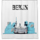 Berlin Skyline Graffiti Shower Curtain. A cool design featuring the skyline of Berlin, the German Capital, with a street art mural of an eastern German car breaking through the wall.