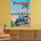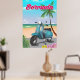 Bermuda Scooter affiche de voyage - Bermuda affiche de voyage rétro avec un scooter rétro sur une plage de sable.