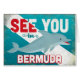 See You In Bermuda retro dolphin travel design. Charming turquoise vintage style with a cheerful swimming dolphin.