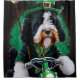 A furry friend behind the handlebars of a shiny green bike, wearing a green Saint Patrick's Day outfit that makes heads turn. The dog is dressed in a festive ensemble, complete with a green bow tie and a matching top hat that sits snugly atop their head. The outfit features intricate designs of shamrocks and leprechauns, making it clear that this dog is ready to celebrate Saint Patrick's Day in style.