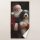 Bernedoodle with Santa Claus Festive Christmas Bath Towel Set