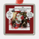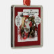 I was impressed by the quality and size of the ornament. Metal framing and design were perfect. Definitely recommend any of the metal framed ornaments. I ordered different ones all of the same quality and personalized professionally. Perfect No pictures as they were all gifts