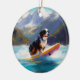Bernese Mountain Beach Surfing Painting Ceramic Ornament