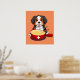 Cute Bernese Oberland or Bernese Mountain Dog eating a pot of fondue.