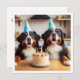 A really sweet invitation picturing 2 large Bernese Mountain dogs with a birthday cake and party hats, a great invitation for Bernese Mountain dog lovers and big dog lovers.