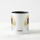 A portrait of a beautiful Bernese Mountain Dog is the feature on this mug. The image is placed on a retro, slightly distressed striped sunset background. The image is printed twice on the mug, with your name, monogram, or other custom text between them.