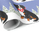 Bernese Mt Dog wearing swiss cross red bandana. Snowy winter background. Cute wrapping paper for berner lovers!