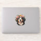 A sticker of a Bernese Mountain Dog wear a Floral Wreath