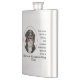 The product is a good size and came exactly as it was pictured. The lid is not attached to the flask, which could be dangerous on drunken nights... The print came out surprisingly well and looks very sharp. Would definitely recommend.