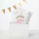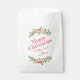 Personalized holiday Christmas favour bags with a stylish, modern watercolor of green leaves and red berries with your greeting and info in chic lettering. MATCHING items in our collection.